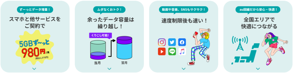 ・お得なプランが盛りだくさん!一人一人に合わせたお得なプランをご案内!・日常のうっかりもしっかりサポート!心配なくご利用・Webで簡単お手続き、専用スタッフがいつでも対応してくれます。