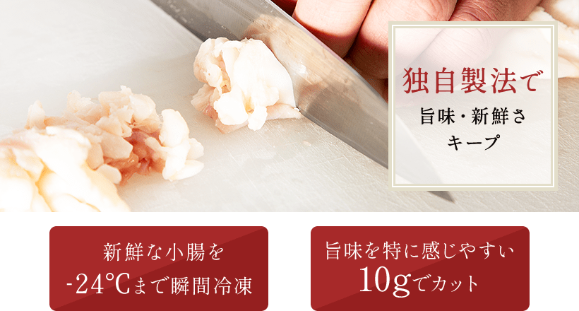 また、1才半~3才の国産牛のもつの中でも小腸のみ使用。