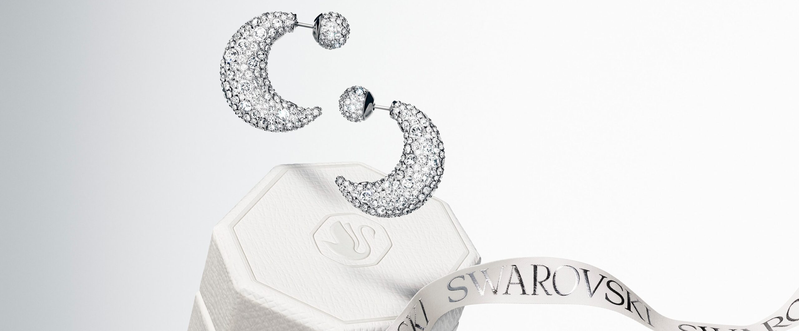 ホワイトクリスタルのモザイクに、ミックスカットと幾重にも重ねられたレイヤードで構成されたMesmeraファミリーは、ホリデーシーズンを通してまばゆい輝きを放つデザインです。マルチファセットカットのストーンが魅力的な輝きで光を反射し、あなたの内に秘めた輝きを表現してくれます。